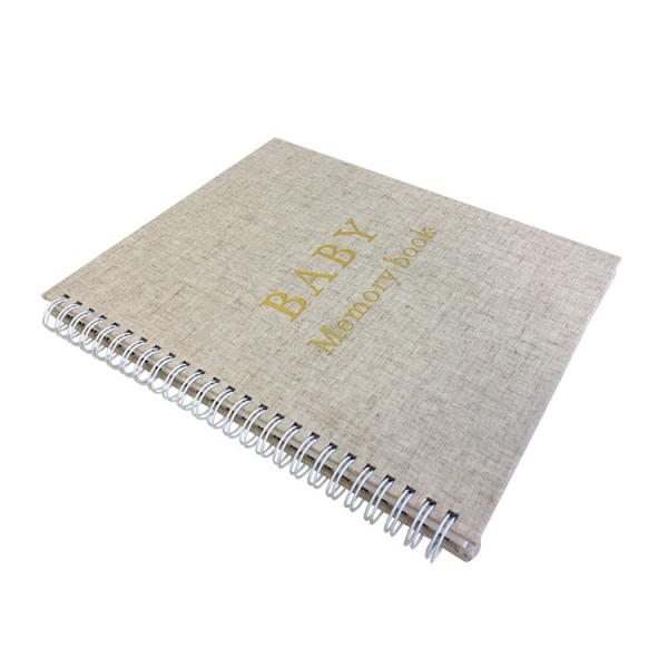 Natural Linen Fabric Hardcover Hot Foil Stamping Sprial Bound Baby Growth Memory Journal Book Printing